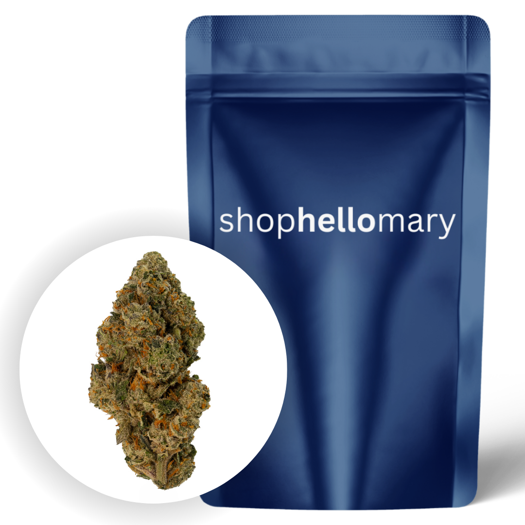 Shop Hello Mary’s Coco Chanel is a well-balanced hybrid showcasing dense, trichome-coated buds in soft green and purple tones, finished with bright orange pistils. Vibrant notes of ripe plum, sweet orange, and tangy grapefruit unfold over subtle earthy spice and a faint gassy edge, creating a smooth and flavorful smoke. The high begins with a clear, uplifting mental boost that encourages creativity and focus, then gradually settles into a calm, relaxed body feel without becoming too heavy.