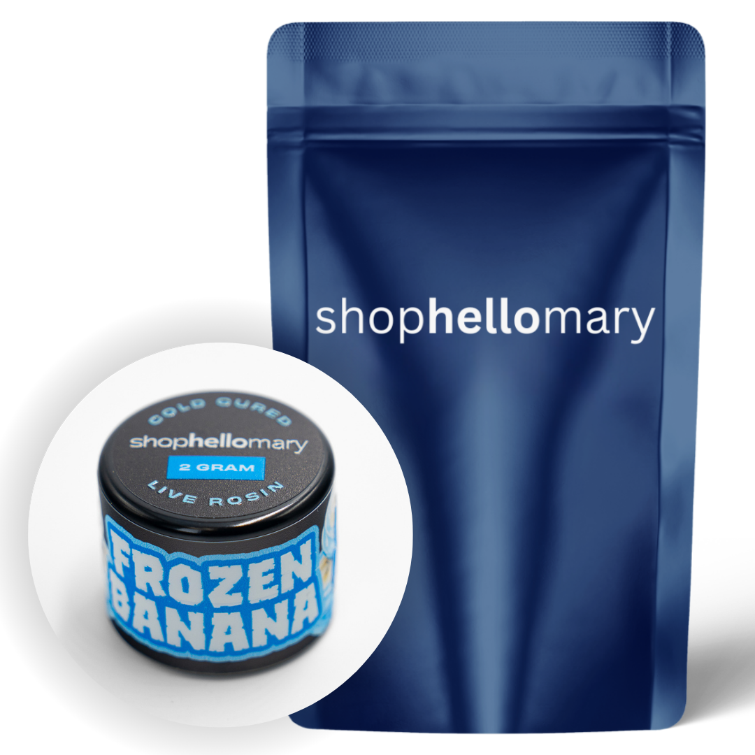Shop Hello Mary’s Frozen Banana THCa Rosin delivers creamy banana, bright spice, and subtle mint notes in a smooth, flavorful dab. This balanced hybrid offers a relaxing, body-soothing high paired with a happy, uplifted mood—perfect for unwinding while staying sociable and engaged.