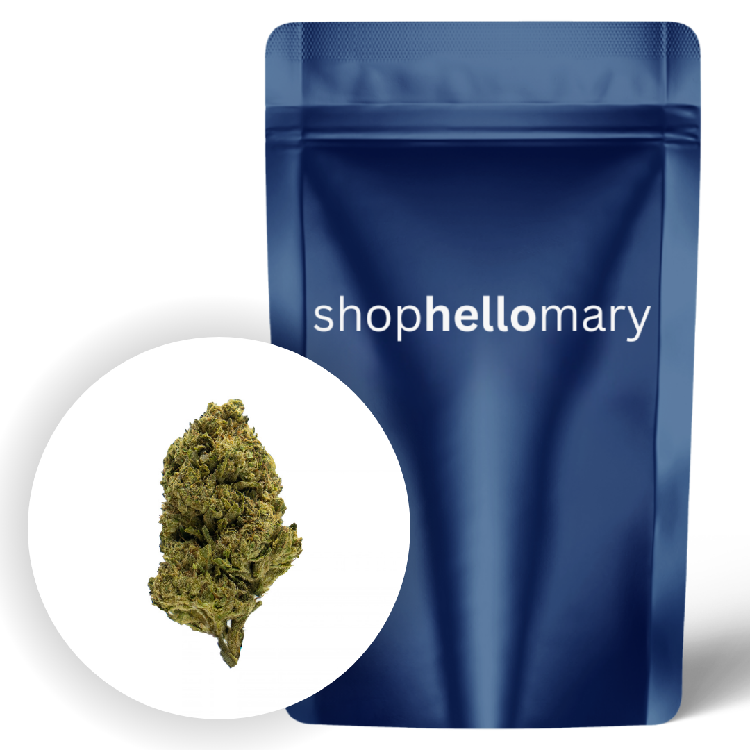 Shop Hello Mary’s Gelato is an evenly balanced hybrid known for its sweet, sherbet-like flavor layered with fruity blueberry and orange citrus, creamy richness, and subtle woody spice. This outdoor greenhouse-grown flower showcases dense, grape-shaped buds with dark forest green and purple hues, bright orange hairs, and a glistening coat of sticky crystal resin. Smooth and flavorful on the inhale, it delivers a fast-acting cerebral rush of uplifted euphoria and focused energy that gradually melts into calm, full-body relaxation without heavy sedation. Potent and well-balanced, it’s a go-to for easing pain, fatigue, and tension while staying mentally engaged.