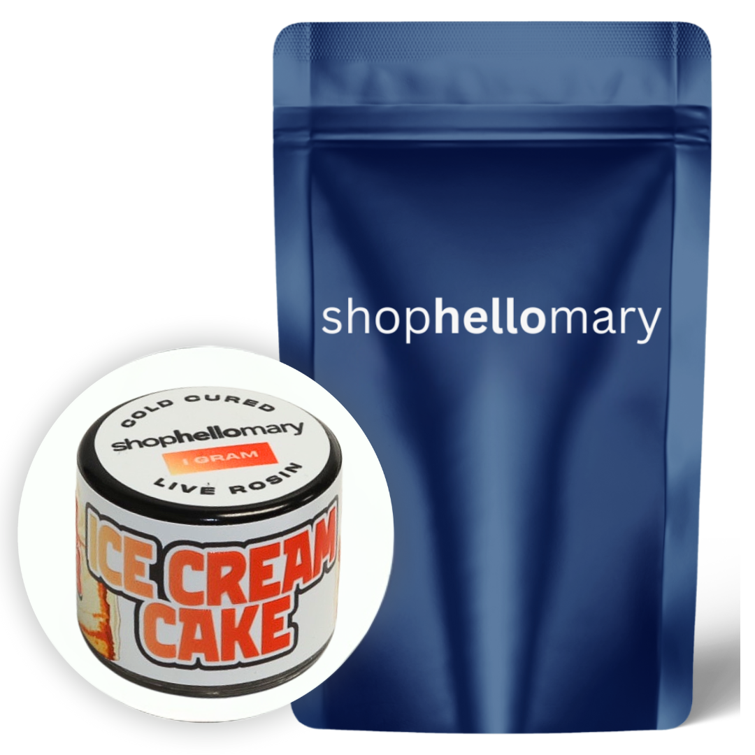 Hello Mary’s Ice Cream Cake rosin is a decadent indica-leaning hybrid that delivers dessert-like flavor and deeply soothing effects. Expect a creamy, vanilla sweetness layered with hints of dough and gas, creating a rich and smooth dabbing experience. The high washes over you with calming waves that melt stress and tension, leaving you relaxed, content, and ready for rest. Perfect for winding down or indulging in a late-night treat.
