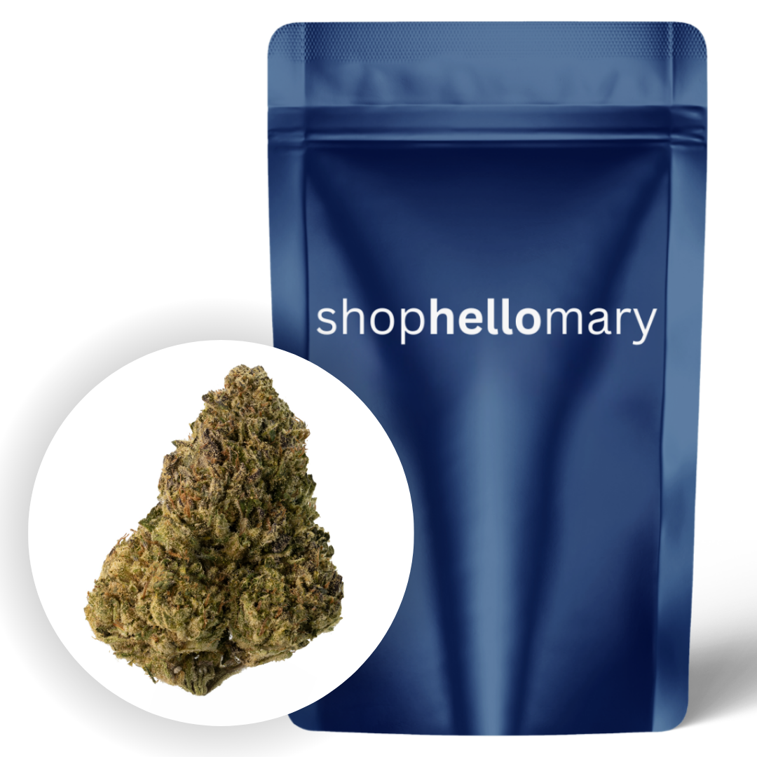 Shop Hello Mary’s Lance is a balanced hybrid with a rich, candy-sweet profile blending grape, creamy vanilla, and tangy fruit with a subtle pine and earthy finish. Grown in an outdoor greenhouse, this flower produces dense, resin-coated buds with deep purple and green tones, bright orange hairs, and a thick layer of frosty trichomes. The effects come on with a quick, uplifting head rush that boosts mood and clarity, then ease into a smooth, calming body relaxation that stays light and functional.