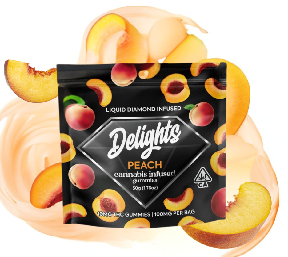 Delight’s Liquid Diamond Infused Gummies deliver a bright sativa experience in three delicious flavor options: Cherry, Strawberry, and Peach. Each gummy is packed with 10mg of THC and infused with premium liquid diamonds for a smooth, euphoric lift. Whether you choose a single flavor or mix and match, every 100mg bag brings a flavorful, energizing buzz perfect for daytime adventures. The combination of the flavor and THC provides a perfect balance of indulgence and relaxation, letting you fully embrace the experience and feel the effects. These gummies are vegan-friendly and fast-acting, so you can enjoy both the benefits and the great taste with ease and speed.