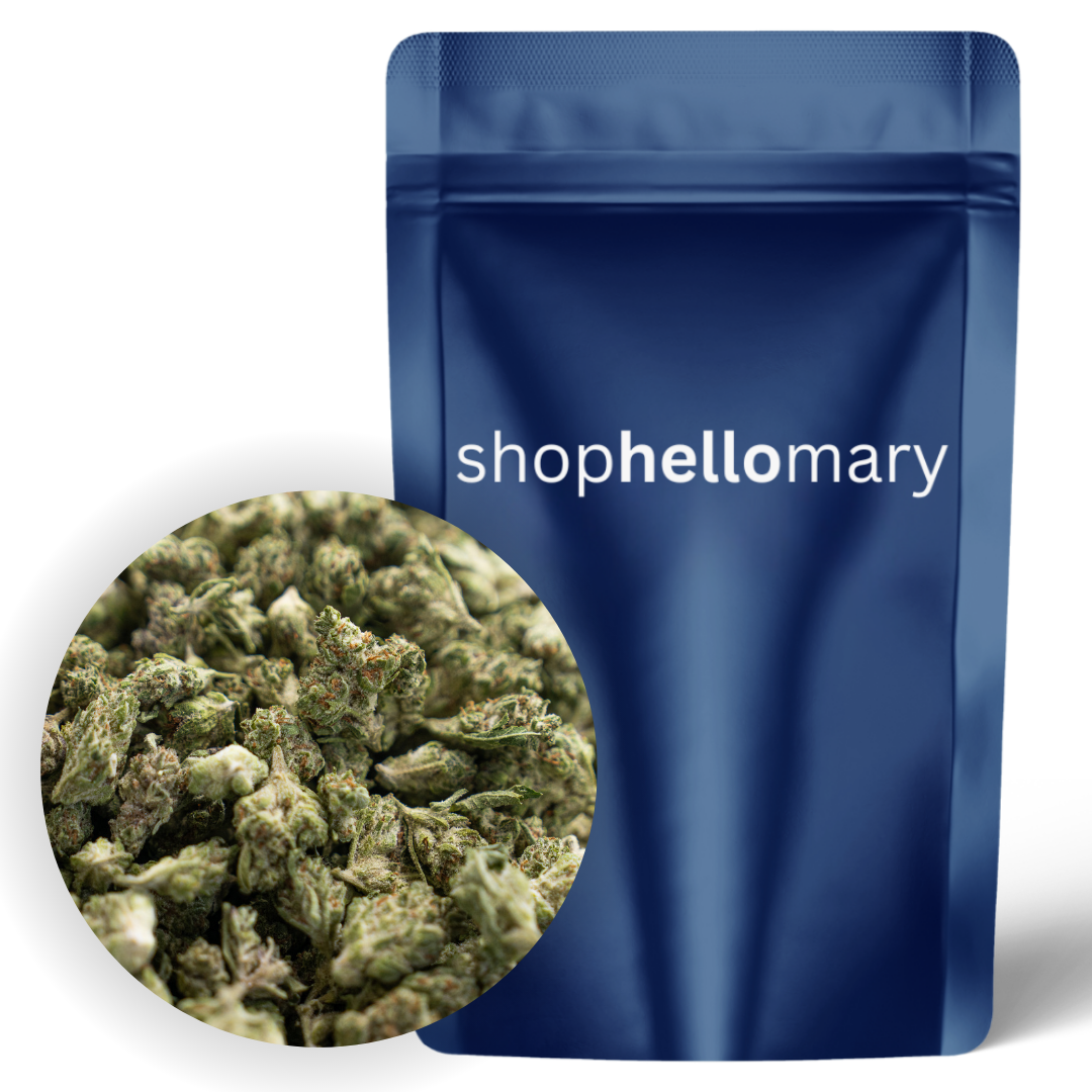 Shop Hello Mary’s Madd Fruit is a flavorful, greenhouse-grown indica-dominant hybrid bursting with ripe papaya, juicy berries, and sweet tropical candy layered over subtle earthy spice. Sun-kissed, resinous buds carry vibrant green tones and a naturally rich aroma with musky depth. It delivers a gentle cerebral calm that settles into soothing, full-body relaxation and steady comfort. This strain supports stress relief, mood balance, and physical tension release, making it ideal for easy evenings and relaxed unwind sessions.