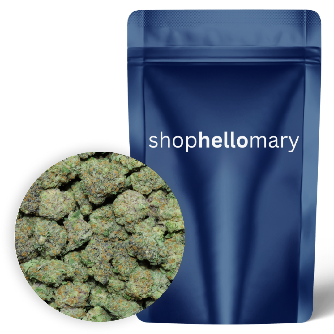 Hello Mary’s Magic Marker is an indica-leaning hybrid strain, born from the powerful cross of Permanent Marker and RS-11. Known for its loud and lingering aroma, it hits the nose with sharp, minty chemical notes layered over sweet sherbet and tropical fruit, making it as unforgettable as its name suggests. The effects lean calming, offering a smooth balance of mental ease and physical relaxation, perfect for unwinding while still keeping a clear, creative edge. This strain’s dense, frosty buds reflect its award-winning lineage, delivering both potency and flavor that stand out in any session.