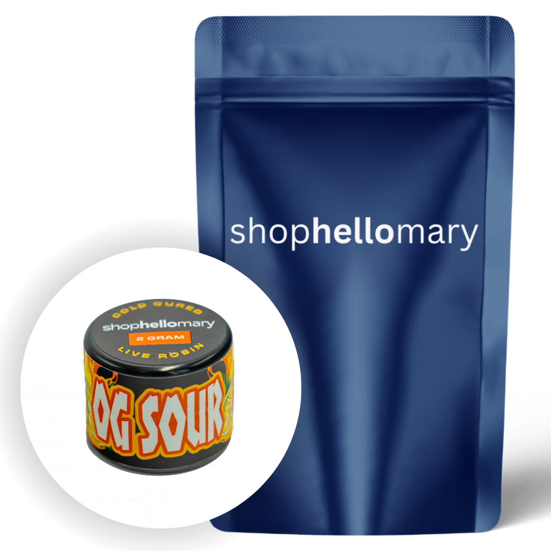 Shop Hello Mary’s OG Sour Rosin is a terpene-rich, evenly balanced hybrid concentrate bursting with tangy sour berries and sharp diesel layered over earthy kush and subtle blueberry sweetness. Carefully pressed for a clean, solventless finish, it delivers bold, fuel-forward flavor with a bright citrus bite and a smooth, resinous exhale that lingers. The effects arrive quickly with an uplifting cerebral rush that eases stress and anxious tension before leveling into a relaxed, social body calm and steady comfort. Ideal for mood support, creative focus, and balanced day-to-night sessions.