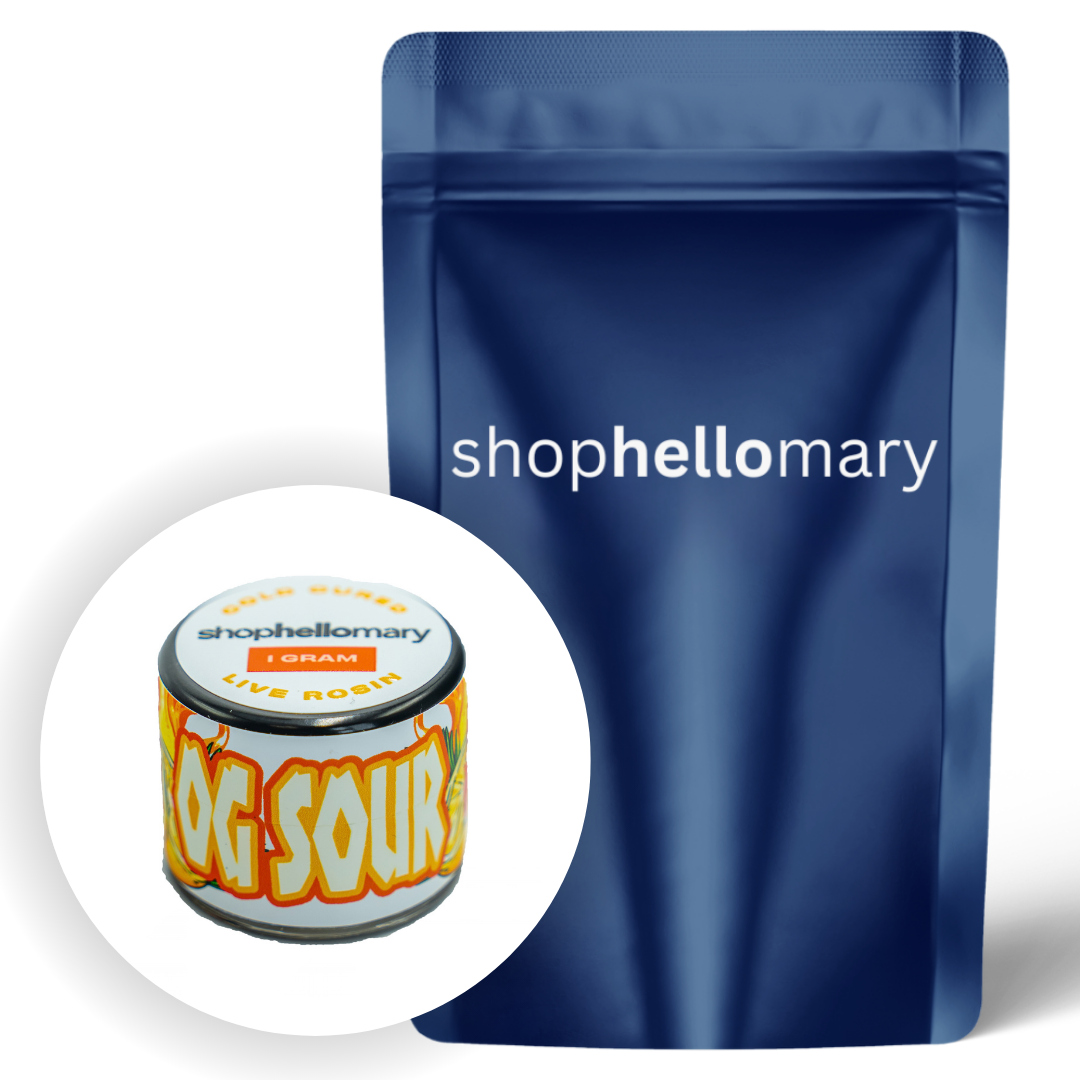 Shop Hello Mary’s OG Sour Rosin is a terpene-rich, evenly balanced hybrid concentrate bursting with tangy sour berries and pungent diesel layered over earthy kush depth. This solventless extract delivers bold, fuel-forward flavor with a sharp citrus bite and a smooth, resinous exhale. Effects begin with an uplifting cerebral rush that eases stress and anxious tension before building into a social, giggly buzz and settling into balanced body relaxation, making it ideal for anytime use.