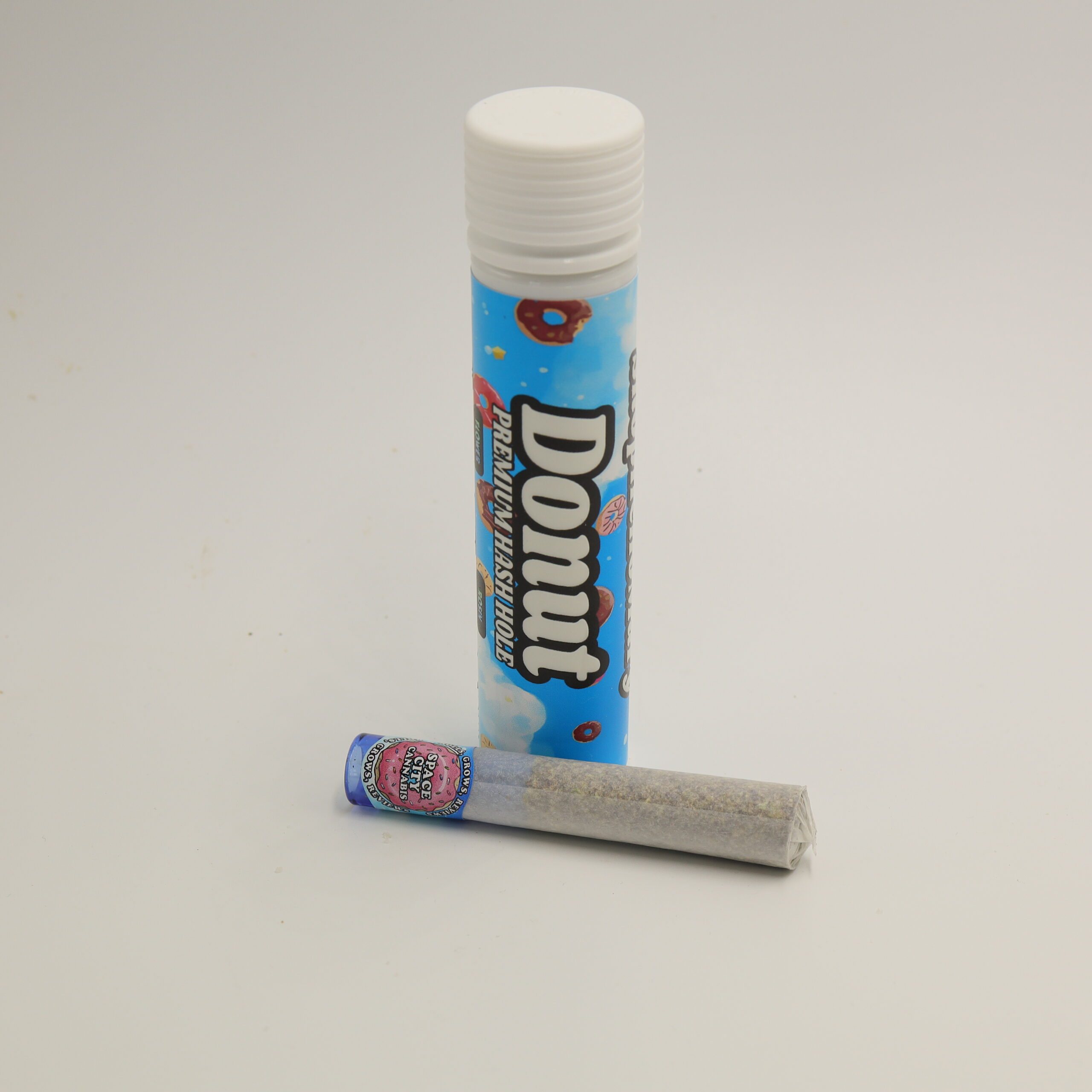 Experience next-level flavor with Space City Donut, a 1.5g flower and .5g live rosin infused hash hole by Shop Hello Mary x Space City, crafted with premium indoor Kaptain Krunch flower and a solventless Space Goo rosin core running through the center for a smooth, even burn.