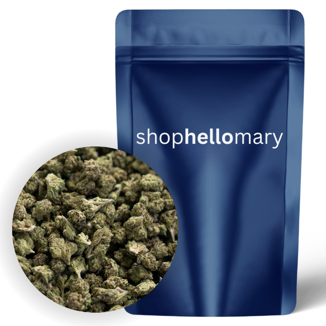 Shop Hello Mary’s White Runtz is a potent, indoor-grown balanced hybrid bursting with sweet and sour fruity candy, bright citrus, and creamy sugary notes layered over subtle earthy pine. Dense, resin-coated smalls showcase forest green hues with reddish orange hairs and a thick blanket of snowy white trichomes, releasing a sweet, citrus-kissed aroma with a light earthy finish. It delivers a tingly, uplifting cerebral spark that slowly melts into long-lasting, calming body relaxation and full-body ease. This strain supports stress relief, muscle tension comfort, and mood elevation, making it ideal for relaxed afternoons or easy nighttime unwinding.